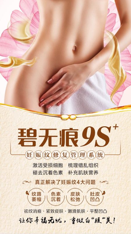 广州花都时代妇产医院的时代医养月子中心推出了祛妊娠纹的服务项目——碧无痕9S+妊娠纹修复系统仪器,时代美容师为妈咪们进行皮肤护理时,还会使用专业的去妊娠纹产品加上专业的按摩手法来祛除妊娠纹。产后受到妊娠纹困扰的女性可以通过它来淡化,或减少妊娠纹的外观或范围。