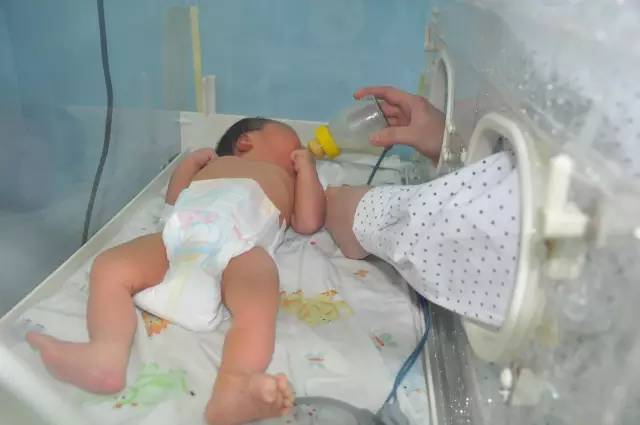 医护人员护理呛奶的新生儿