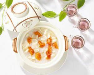 做法:将猪肺洗净,加清水适量煮至猪肺七成熟时,取出切丁,将大米淘净,加猪肺汤、猪肺丁及清水适量煮粥,待熟后,调入葱、姜、椒、盐、料酒等,再煮一二沸即成,每日1剂。