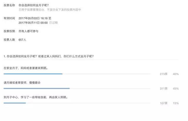 前段时间,有人做了一个关于如何做月子的投票,你是选择找月嫂?仍是由家里老人照料?或者是到月子中心?一共有600多妈妈投票。
